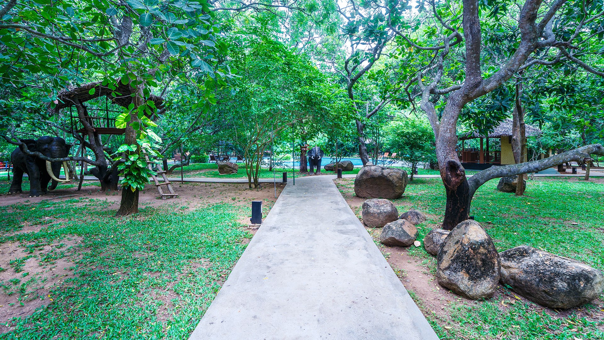 The grounds are shaded by magnificent banyan trees and there is a good cafe.