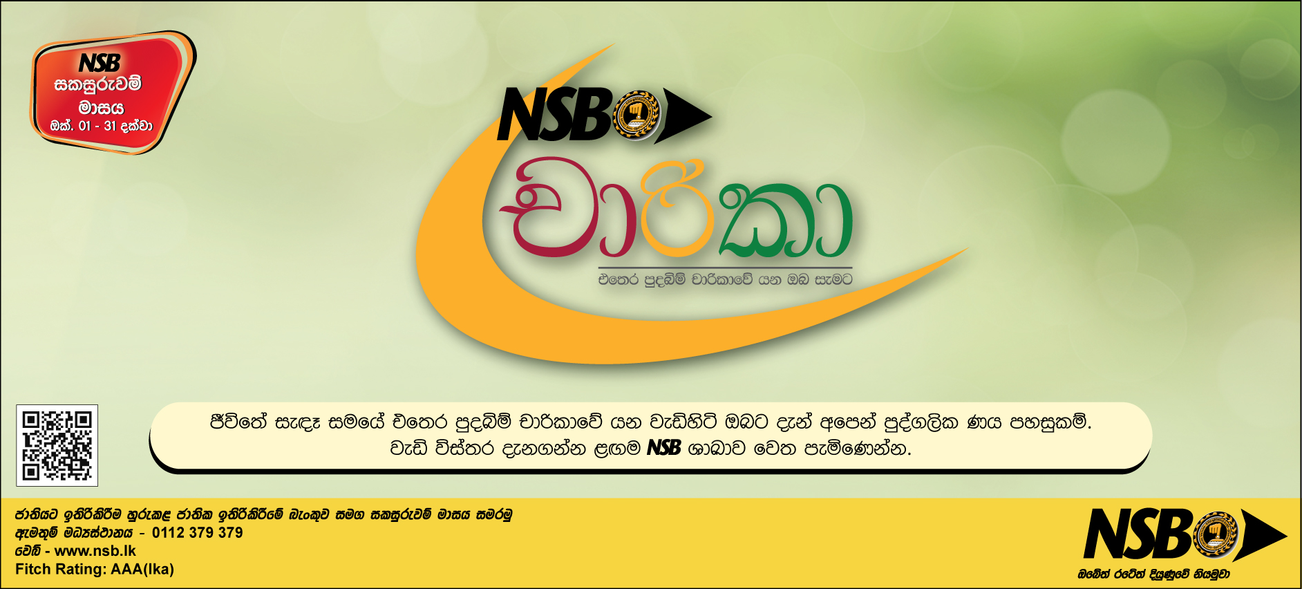 National Savings Bank is the premier Licensed Specialized Bank in Sri Lanka owned by the Govt. of Sri Lanka. It is the only bank whose deposits are fully guaranteed by the Govt. of Sri Lanka as expressed explicitly in the statute governing the Bank: ‘The repayment of the monies deposited in the bank and of the interest thereon and the payment due on the surrender of a savings certificate shall be guaranteed by the Government of Sri Lanka.’ (NSB Act No.30 of 1971, Section 18: Guarantee by the Government of Sri Lanka)